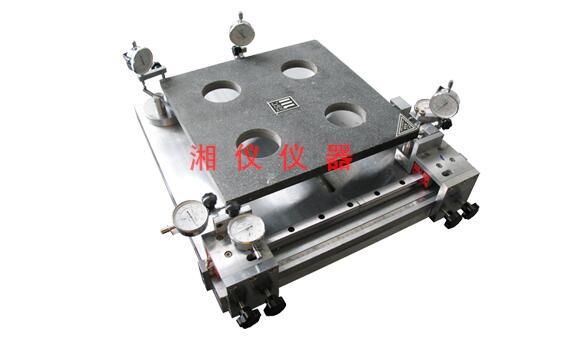 二、主要技术参数:1、测量精度:± 0.012、测量范围: 40~600×600 40~800×800 40~1000×1000(单位:mm)3、标准板客户选购(选购件)4、根据用户要求可选用数显表。三、原理及结构: 本仪器由支承平板、可移动的左支座和右支座组成一个直角坐标系。在平板上有三个等高支承销与陶瓷面砖类似外形和具有理想尺寸的标准板进行探测,并将仪表值调整至适当位置,并记下该示值。然后,以被测陶瓷面砖取代标准板,在不移动测量点的情况下,分别测出六项指标参数。左、右支座及中心测量支座可在平板上作平行移动,组成不同位置的空间座标,以适应不同规格尺寸陶瓷面砖的测定。