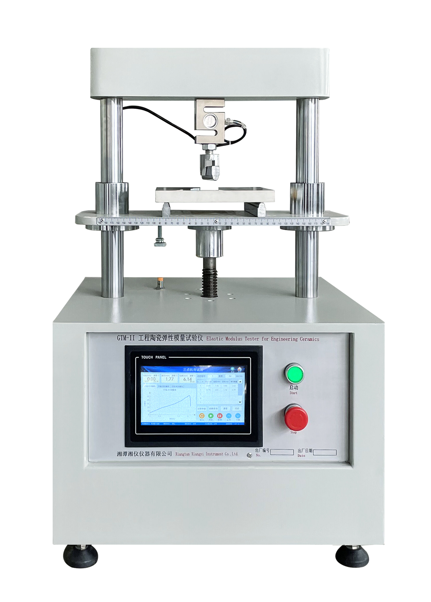 简要描述: 本仪器采用三点弯曲加载方法测量石墨、陶瓷等非金属材料的弹性模量,由液压加载系统、变形测量系统、压力测量系统和计算机测控系统组成。变形测量系统采用高精度位移传感器测量微应变;压力测量系统采用高精度压力传感器和数显压力表测量;三大测控系统由计算机控制,实现全自动测试,数据处理,并打印输出检测报告。 本仪器满足 GB/10700—2006“精细陶瓷弹性模量试验方法-弯曲法”,以及YS/T63.14-2006《铝用炭素材料检测方法,第13部分杨氏模量的测定-静测法》,适用于工程陶瓷、精细陶瓷、铝用炭素材料在室温下的静态弹性模量的测定。